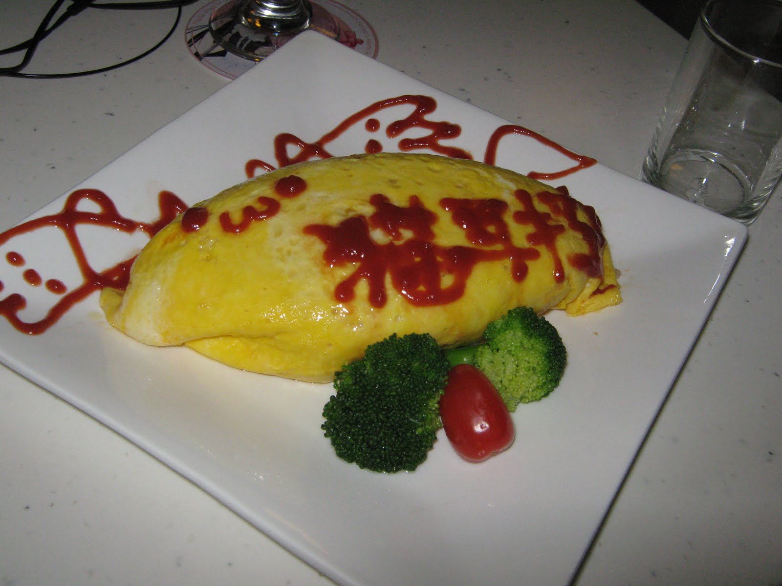 屋主則不知道要在蛋包飯上寫甚麼,最後交給小崎決定吧,就成了這個。飲料是粉圓,雪糕加上草莓的,好新鮮的味覺,不錯喔。